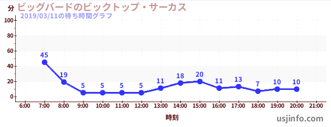 • ビッグバードのビックトップ・サーカス$B$N(B2019年03月11日の待ち時間