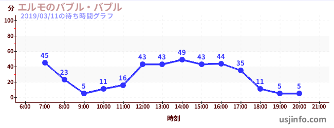 • エルモのバブル・バブル$B$N(B2019年03月11日の待ち時間