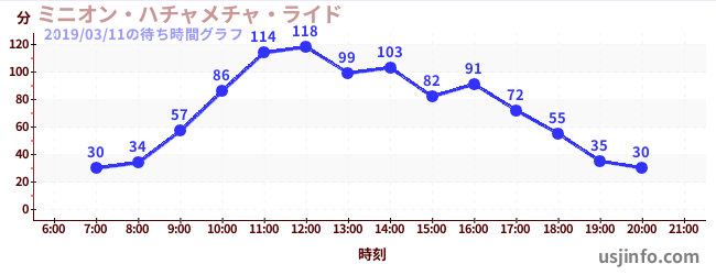 • ミニオン・ハチャメチャ・ライド$B$N(B2019年03月11日の待ち時間