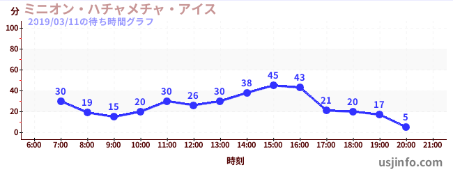 • ミニオン・ハチャメチャ・アイス$B$N(B2019年03月11日の待ち時間