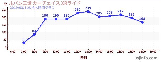 • ルパン三世 カーチェイス XRライド$B$N(B2019年03月11日の待ち時間