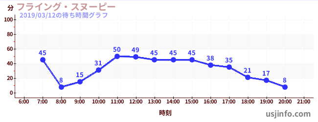 • フライング・スヌーピー$B$N(B2019年03月12日の待ち時間