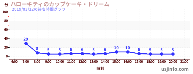 • ハローキティのカップケーキ・ドリーム$B$N(B2019年03月12日の待ち時間