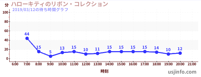 • ハローキティのリボン・コレクション$B$N(B2019年03月12日の待ち時間