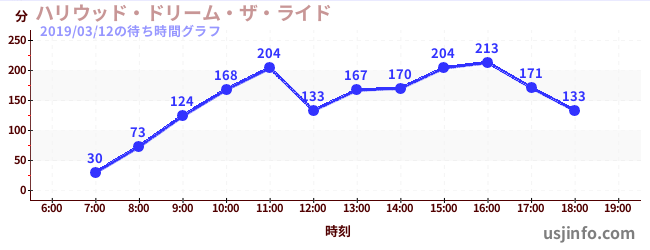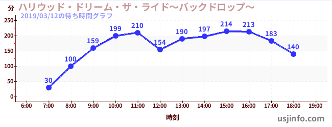 • ハリウッド・ドリーム・ザ・ライド$B$N(B2019年03月12日の待ち時間