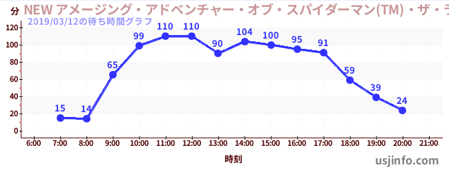 • NEW アメージング・アドベンチャー・オブ・スパイダーマン(TM)・ザ・ライド 4K3D$B$N(B2019年03月12日の待ち時間