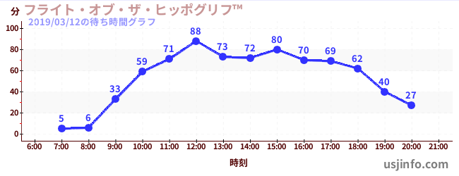 • フライト・オブ・ザ・ヒッポグリフ™$B$N(B2019年03月12日の待ち時間