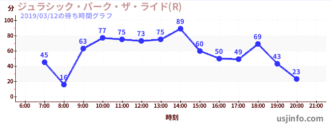 • ジュラシック・パーク・ザ・ライド(R)$B$N(B2019年03月12日の待ち時間