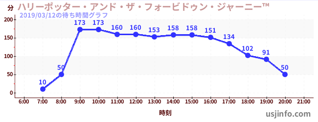 • ハリーポッター・アンド・ザ・フォービドゥン・ジャーニー™$B$N(B2019年03月12日の待ち時間