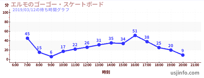 • エルモのゴーゴー・スケートボード$B$N(B2019年03月12日の待ち時間