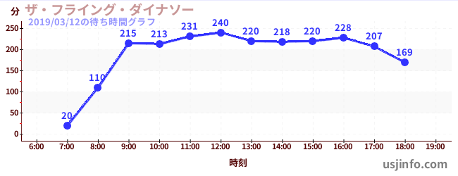 • ザ・フライング・ダイナソー$B$N(B2019年03月12日の待ち時間