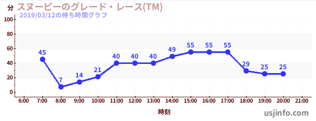 • スヌーピーのグレード・レース(TM)$B$N(B2019年03月12日の待ち時間