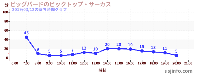 • ビッグバードのビックトップ・サーカス$B$N(B2019年03月12日の待ち時間