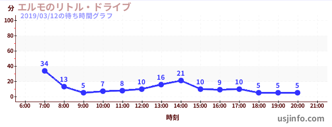 • エルモのリトル・ドライブ$B$N(B2019年03月12日の待ち時間