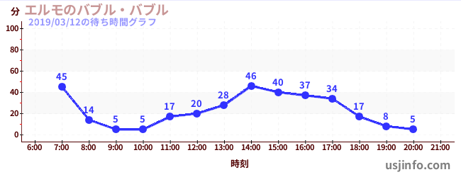 • エルモのバブル・バブル$B$N(B2019年03月12日の待ち時間
