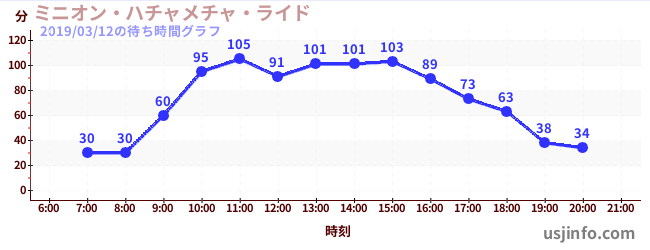 • ミニオン・ハチャメチャ・ライド$B$N(B2019年03月12日の待ち時間