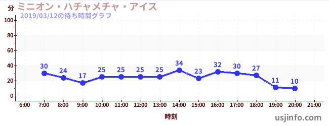 • ミニオン・ハチャメチャ・アイス$B$N(B2019年03月12日の待ち時間