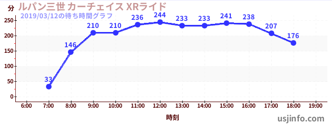 • ルパン三世 カーチェイス XRライド$B$N(B2019年03月12日の待ち時間