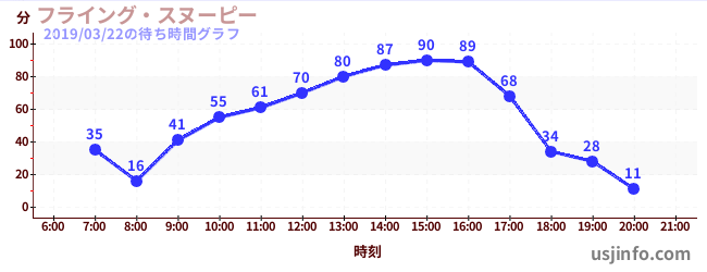 • フライング・スヌーピー$B$N(B2019年03月22日の待ち時間