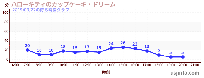 • ハローキティのカップケーキ・ドリーム$B$N(B2019年03月22日の待ち時間