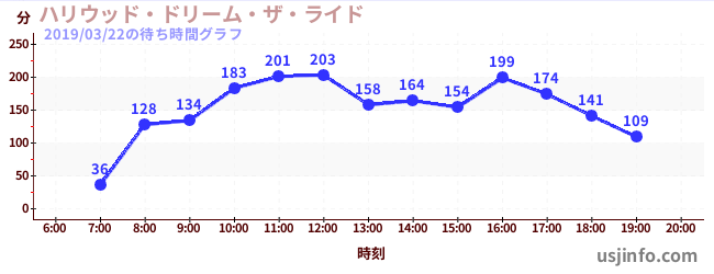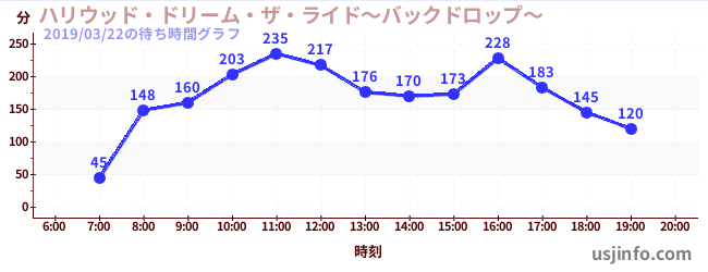 • ハリウッド・ドリーム・ザ・ライド$B$N(B2019年03月22日の待ち時間