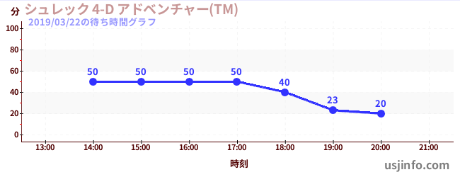 • シュレック 4-D アドベンチャー(TM)$B$N(B2019年03月22日の待ち時間