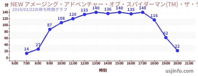• NEW アメージング・アドベンチャー・オブ・スパイダーマン(TM)・ザ・ライド 4K3D$B$N(B2019年03月22日の待ち時間