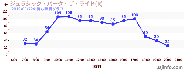 • ジュラシック・パーク・ザ・ライド(R)$B$N(B2019年03月22日の待ち時間