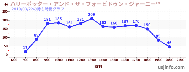 • ハリーポッター・アンド・ザ・フォービドゥン・ジャーニー™$B$N(B2019年03月22日の待ち時間
