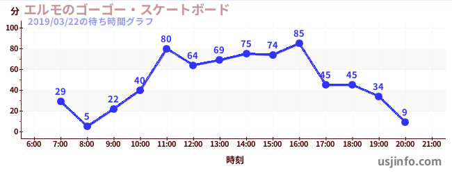 • エルモのゴーゴー・スケートボード$B$N(B2019年03月22日の待ち時間
