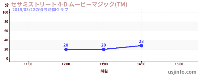 • セサミストリート 4-D ムービーマジック(TM)$B$N(B2019年03月22日の待ち時間