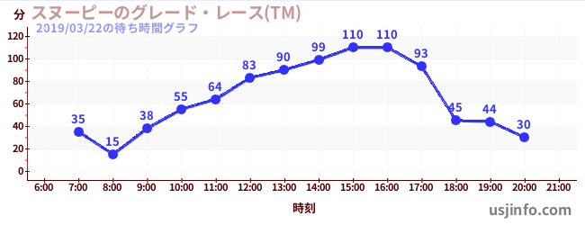 • スヌーピーのグレード・レース(TM)$B$N(B2019年03月22日の待ち時間