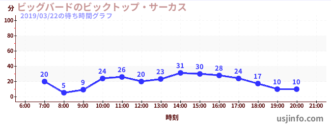 • ビッグバードのビックトップ・サーカス$B$N(B2019年03月22日の待ち時間