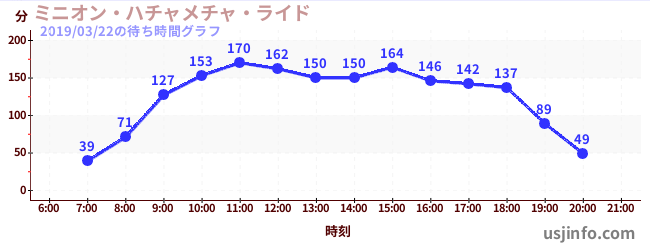 • ミニオン・ハチャメチャ・ライド$B$N(B2019年03月22日の待ち時間