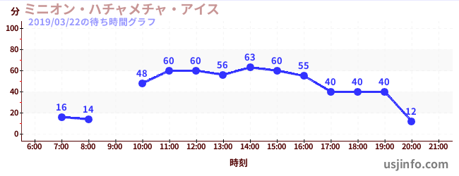 • ミニオン・ハチャメチャ・アイス$B$N(B2019年03月22日の待ち時間