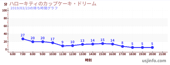 • ハローキティのカップケーキ・ドリーム$B$N(B2019年03月23日の待ち時間
