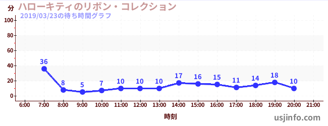 • ハローキティのリボン・コレクション$B$N(B2019年03月23日の待ち時間
