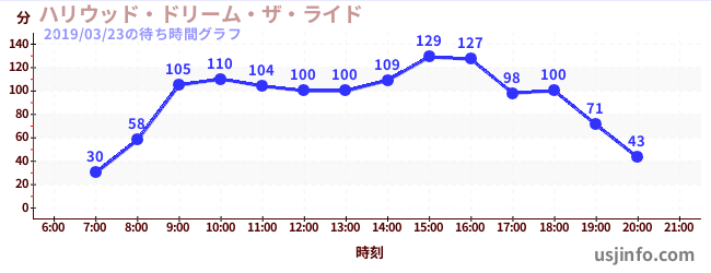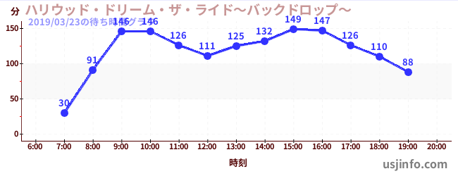 • ハリウッド・ドリーム・ザ・ライド$B$N(B2019年03月23日の待ち時間