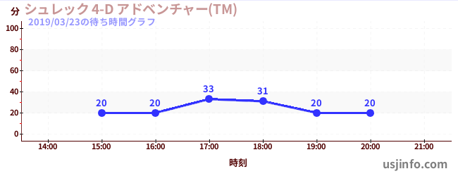 • シュレック 4-D アドベンチャー(TM)$B$N(B2019年03月23日の待ち時間