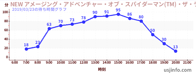 • NEW アメージング・アドベンチャー・オブ・スパイダーマン(TM)・ザ・ライド 4K3D$B$N(B2019年03月23日の待ち時間