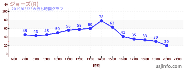 • ジョーズ(R)$B$N(B2019年03月23日の待ち時間