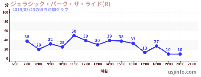 • ジュラシック・パーク・ザ・ライド(R)$B$N(B2019年03月23日の待ち時間