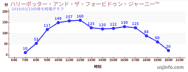 • ハリーポッター・アンド・ザ・フォービドゥン・ジャーニー™$B$N(B2019年03月23日の待ち時間