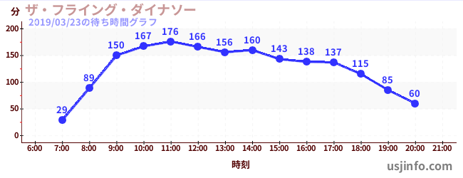 • ザ・フライング・ダイナソー$B$N(B2019年03月23日の待ち時間