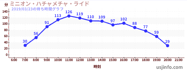 • ミニオン・ハチャメチャ・ライド$B$N(B2019年03月23日の待ち時間