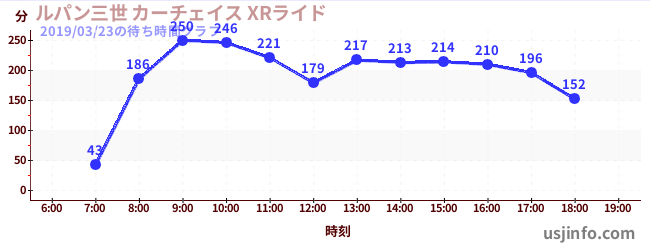 • ルパン三世 カーチェイス XRライド$B$N(B2019年03月23日の待ち時間