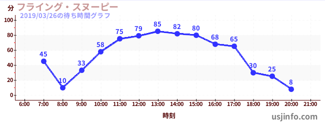 • フライング・スヌーピー$B$N(B2019年03月26日の待ち時間