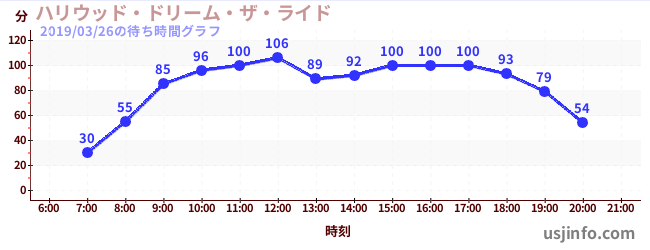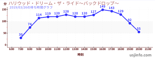 • ハリウッド・ドリーム・ザ・ライド$B$N(B2019年03月26日の待ち時間
