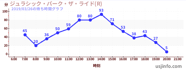 • ジュラシック・パーク・ザ・ライド(R)$B$N(B2019年03月26日の待ち時間