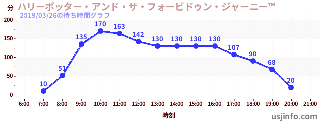 • ハリーポッター・アンド・ザ・フォービドゥン・ジャーニー™$B$N(B2019年03月26日の待ち時間